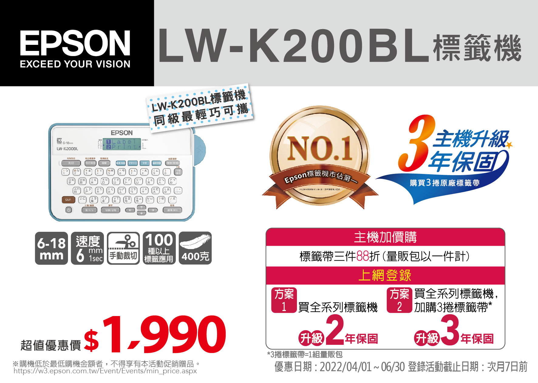 愛普生 EPSON LW-K200BL 輕巧經典款標籤機