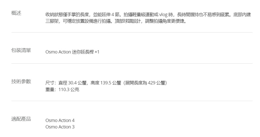 產品型號:OSMO ACTION迷你延長桿