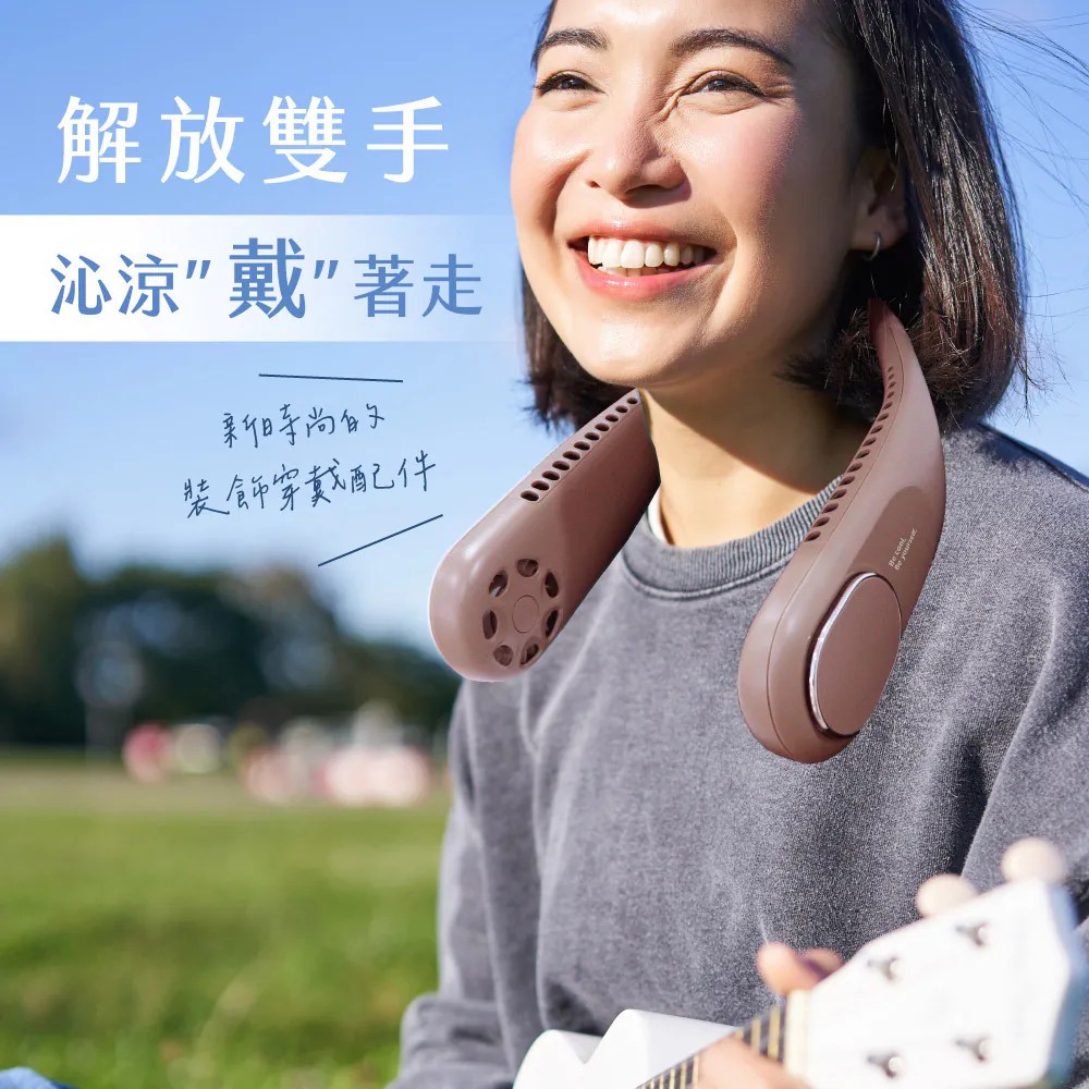 KINYO 無葉渦輪隨行頸掛扇(棕)