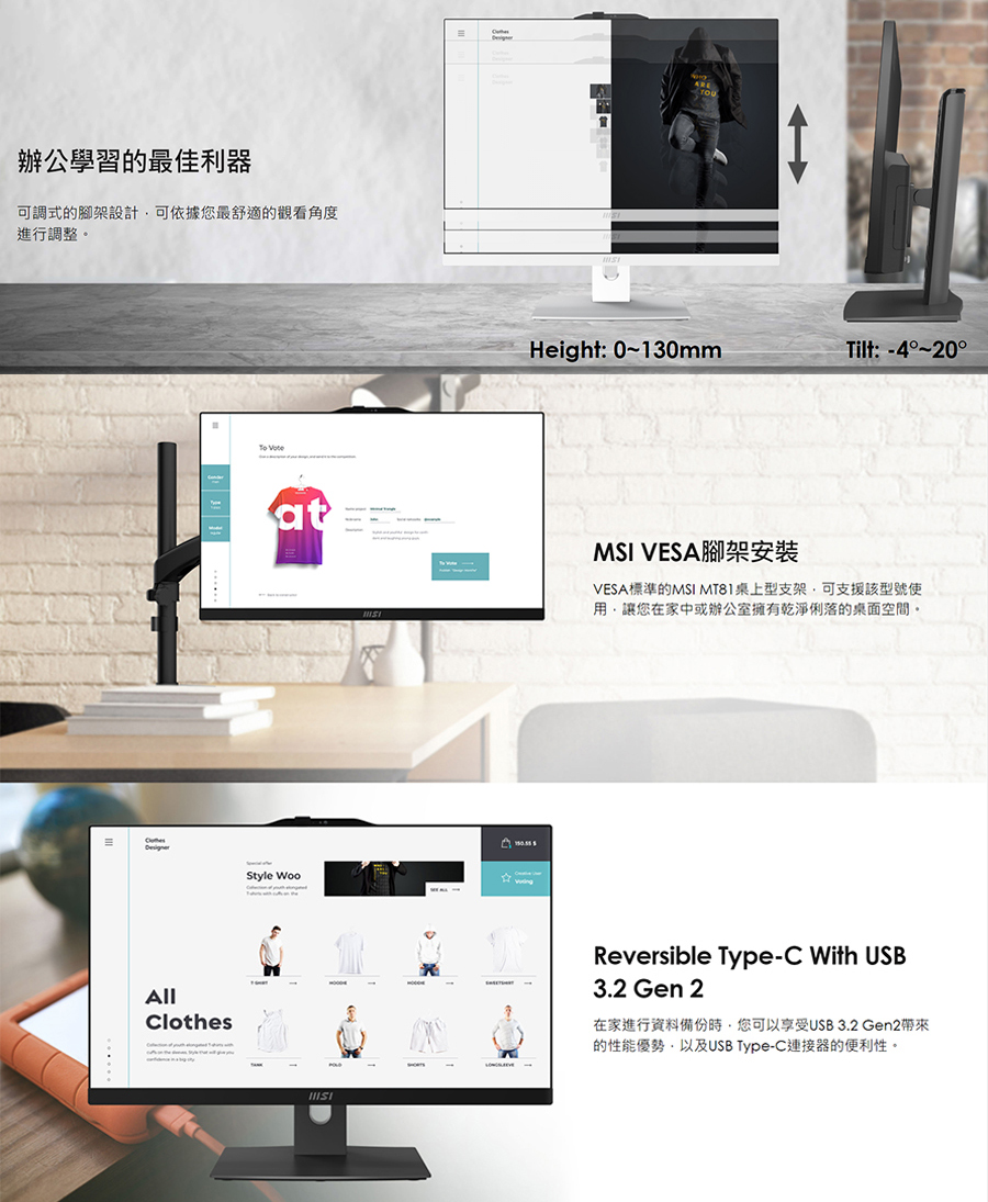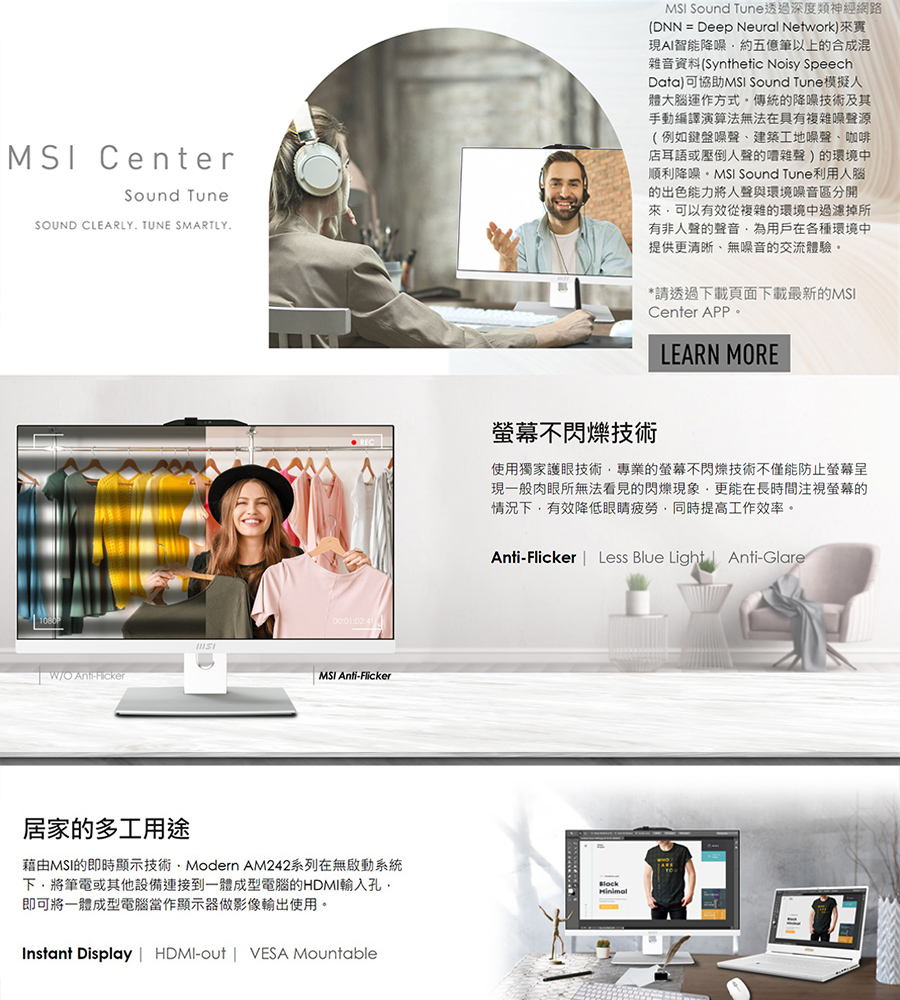 螢幕規格23.8" IPS Grade Panel LED Backlight (1920*1080 FHD) with MSI Anti-Flicker technology