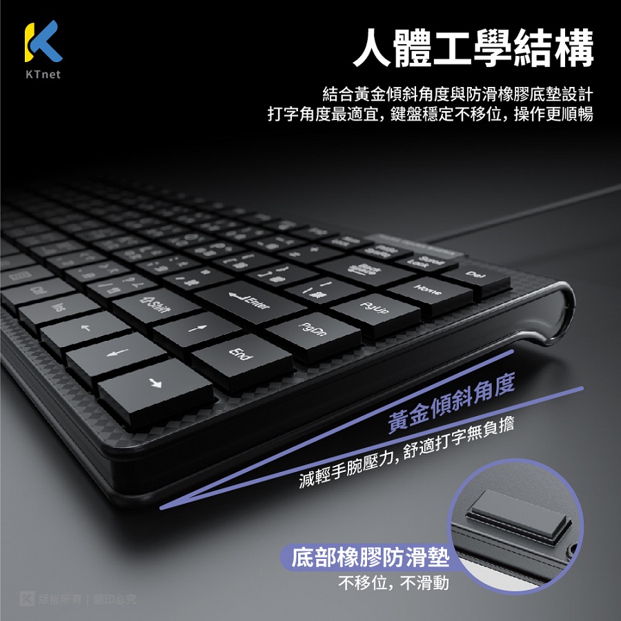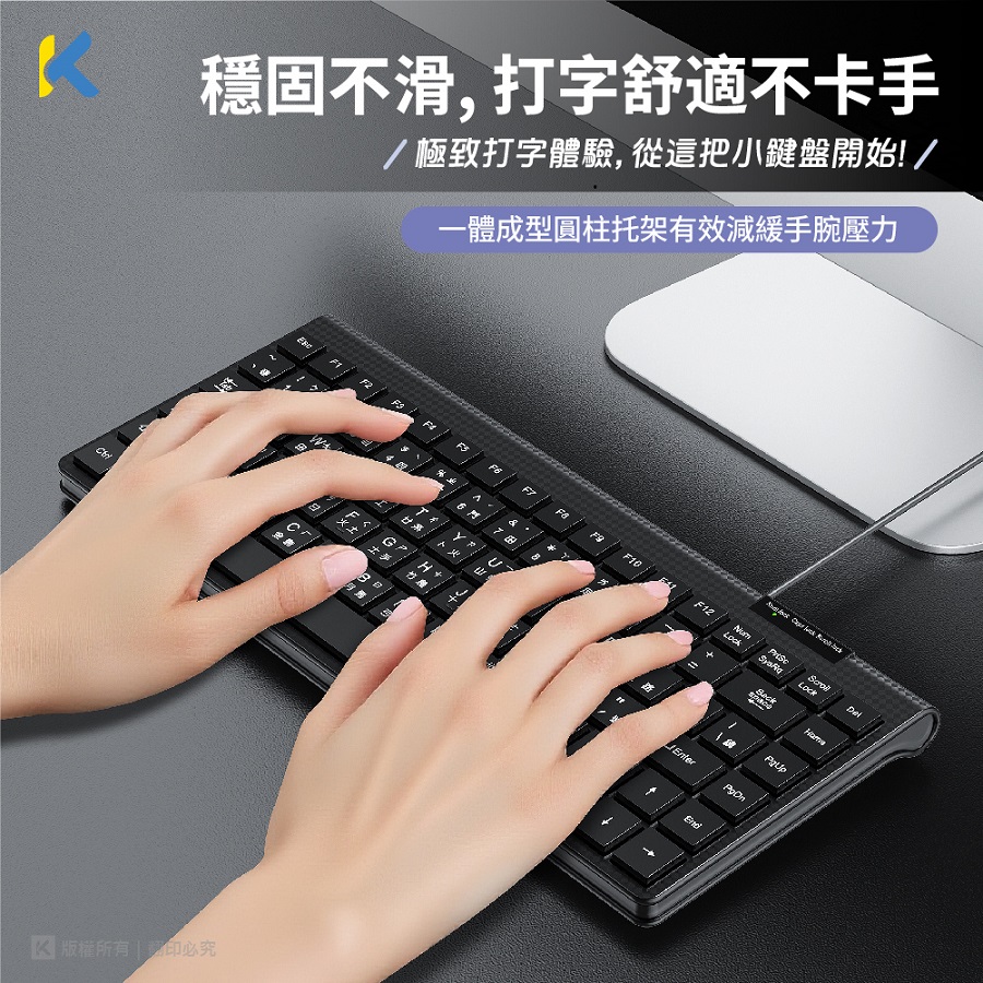 • 人體工學結構,穩固不滑,打字舒適不卡手