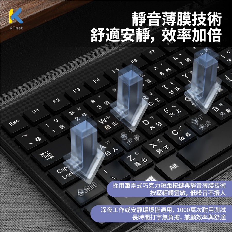 • 筆電式巧克力按鍵與靜音薄膜技術