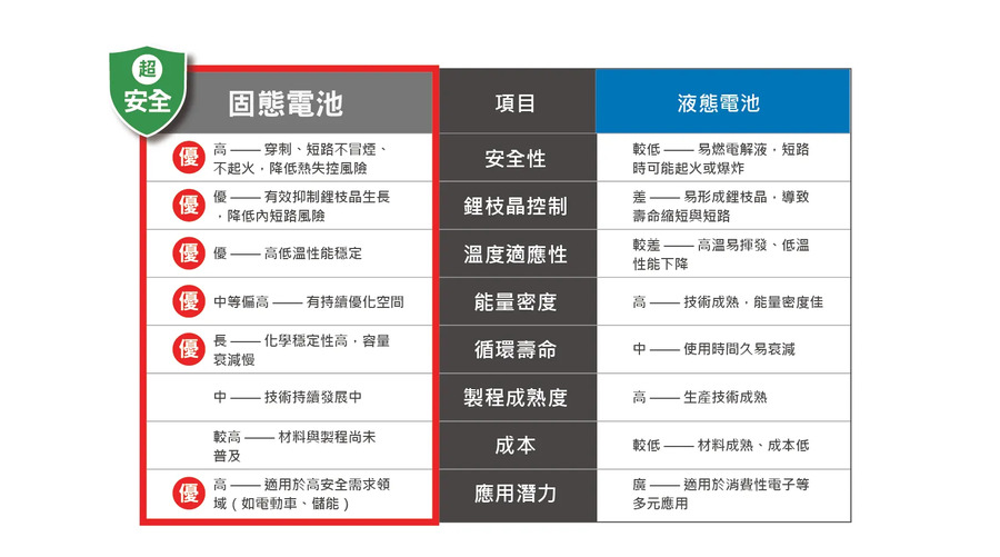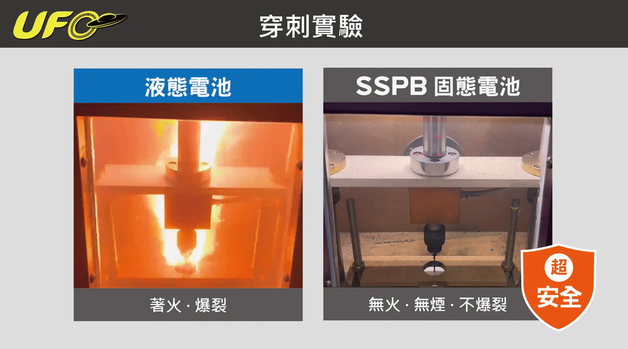 • 高安全性:遭受衝擊,準固態電池也不會燃燒