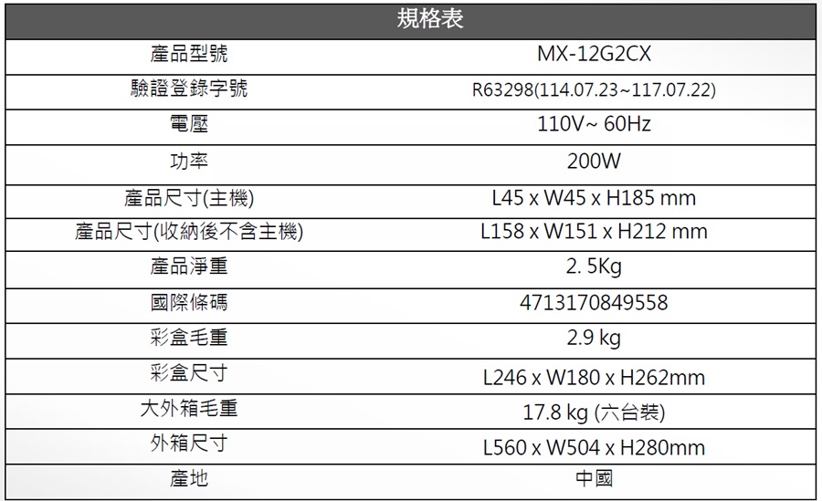 產品型號:MX-12G2CX