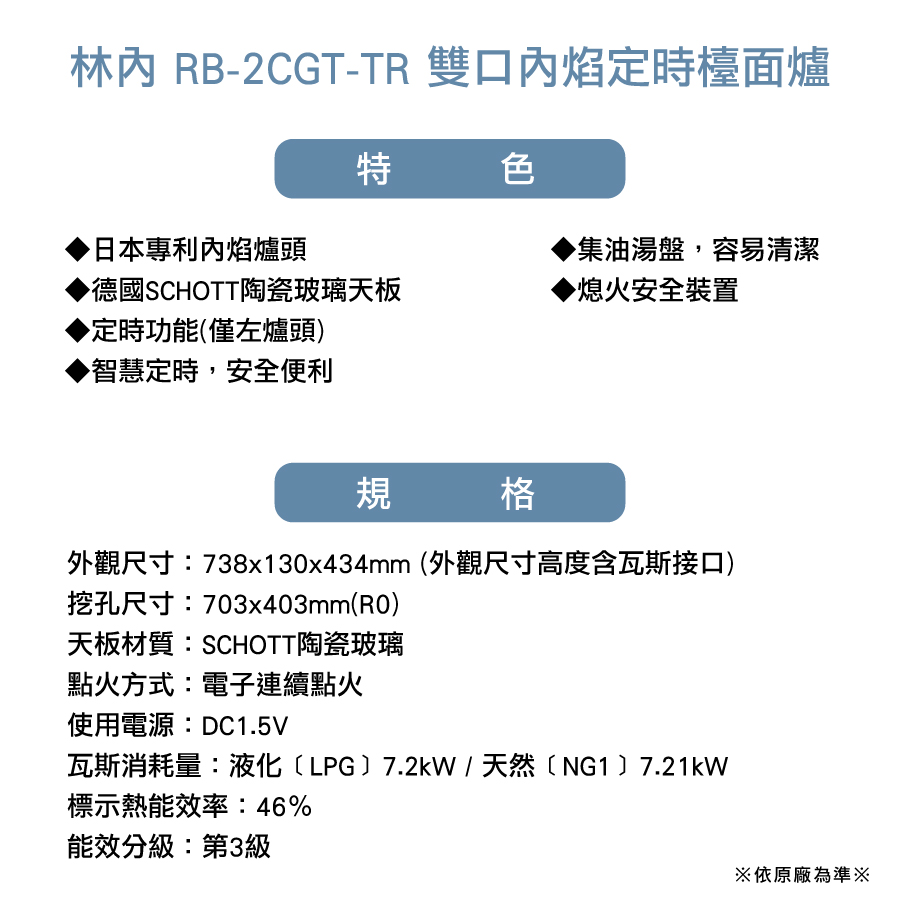 林內進口瓦斯爐雙口內焰定時檯面爐(LPG)