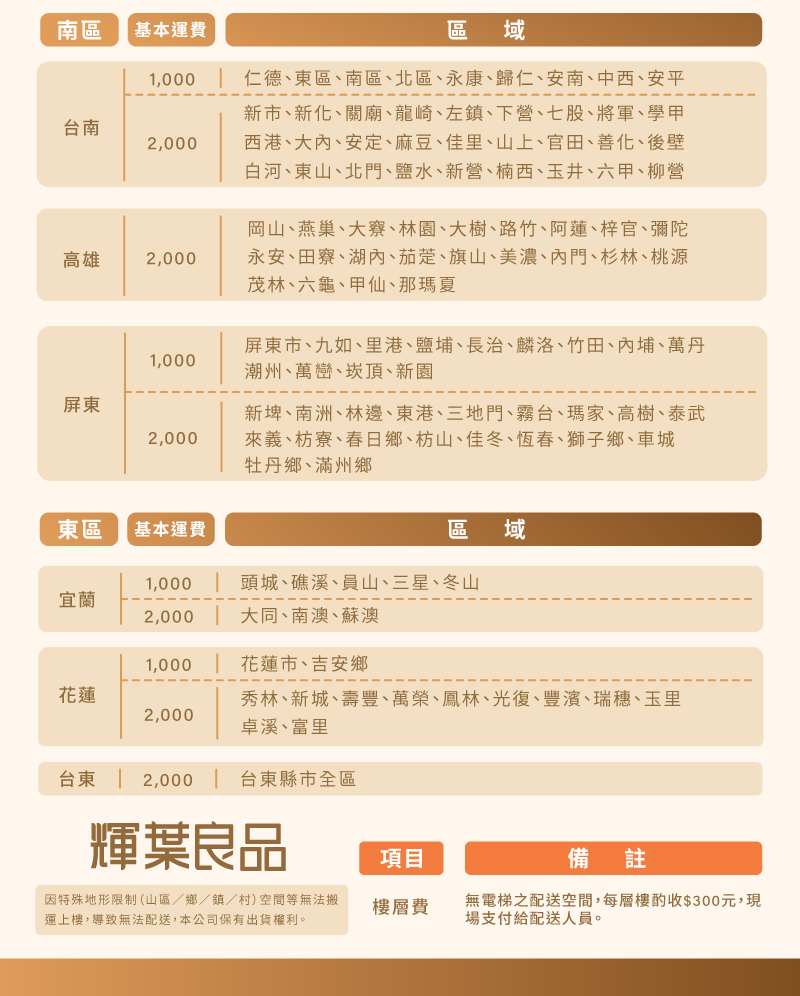 - **若收貨人資訊不完整、收貨人無法收貨、遇颱風地震等天災、公共工程,或遇系統設備維護,倉儲調整、盤點等情況,出貨時間將順延。