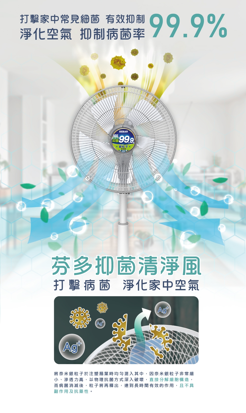 禾聯 HERAN 14吋機械式抑菌立扇 - 細節圖 1
