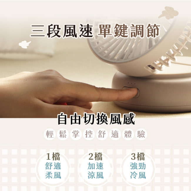 • 三段風速單鍵調節,自由切換風感