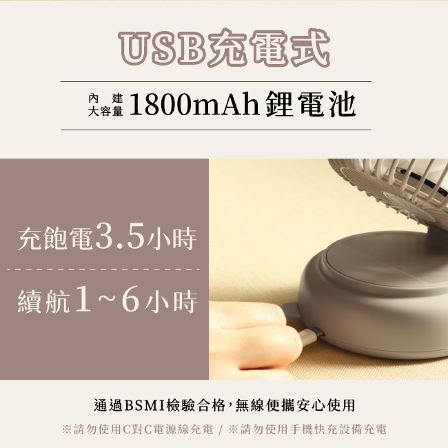 KINYO 多功能擺頭充電風扇 奶茶 - 細節圖 1