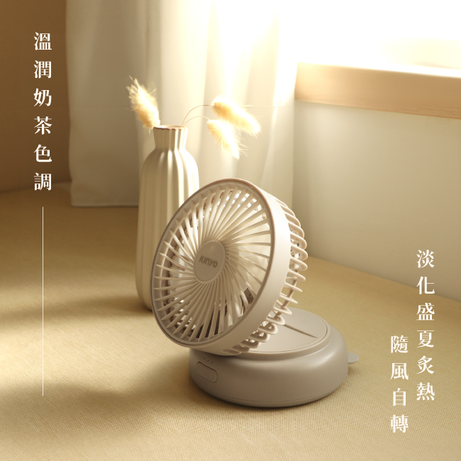 KINYO 多功能擺頭充電風扇 奶茶 - 主要圖片