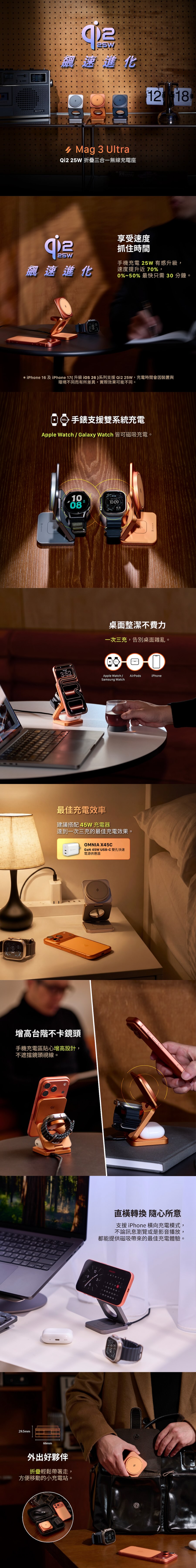 ADAM Mag 3 Ultra Qi2 25W三合一充電座-鈦