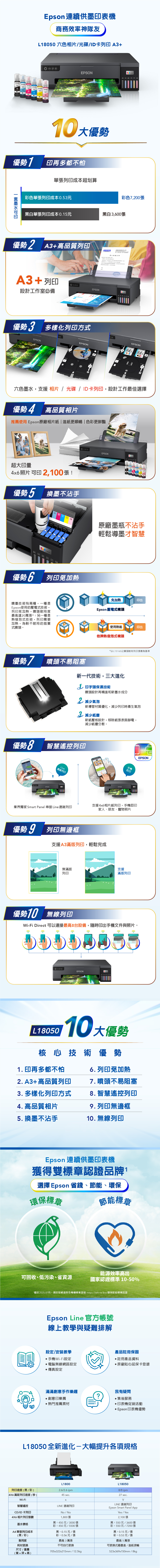 EPSON L18050 A3 六色連續供墨相片/光碟/ID卡印表機