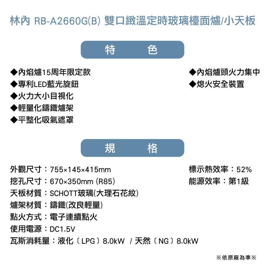 機型:RB-N212G(M) 品名:雙口內焰玻璃檯面爐(大理石花紋)
